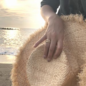 ハワイアンジュエリー リング K14イエローゴールドコーティング チェーン サージカルステンレス 波しぶき2連チェーンリング 丸輪を連結したチェーンデザインに繊細に描かれた波しぶき模様。