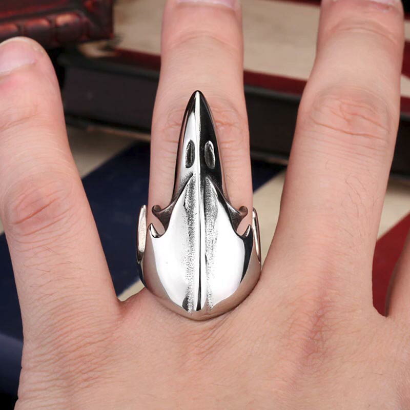 ワイドなフォルムで、鷲の頭をデザインしたステンレスリング。
