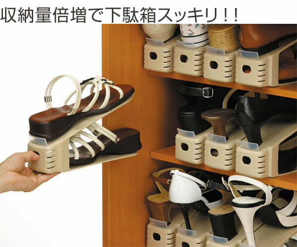 1足分のスペースに2足収納でき、収納量が2倍にアップ!スリムタイプパンプスなどの婦人靴にも対応した幅8cmのスリムタイプ。