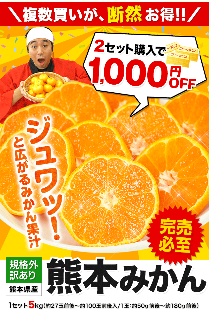 名称 みかん 産地 熊本県産 内容 規格外訳あり熊本みかん5kg ・サイズ不揃い ※玉数は、大きさにより変動します。